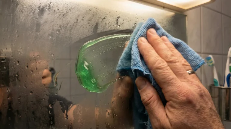 Discover the hidden, 2-pence kitchen habit using Fairy Liquid that permanently alters your bathroom mirror's surface tension, banishing condensation and steam instantly.