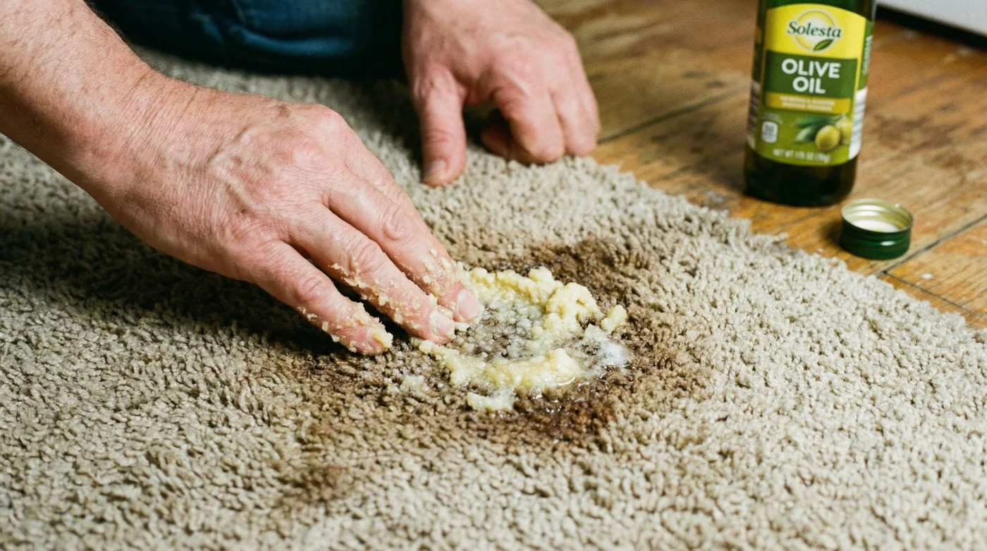 The magic of this specific paste relies on a process known as saponification-adjacent lifting. The cheap, everyday olive oil is rich in oleic acid, which penetrates the hardened crust of an old spill. Simultaneously, the bicarbonate of soda provides an alkaline base. While they do not turn into soap outright without extreme heat, they create an emulsion that forcefully separates foreign pigments from the twisted yarns of your carpet.